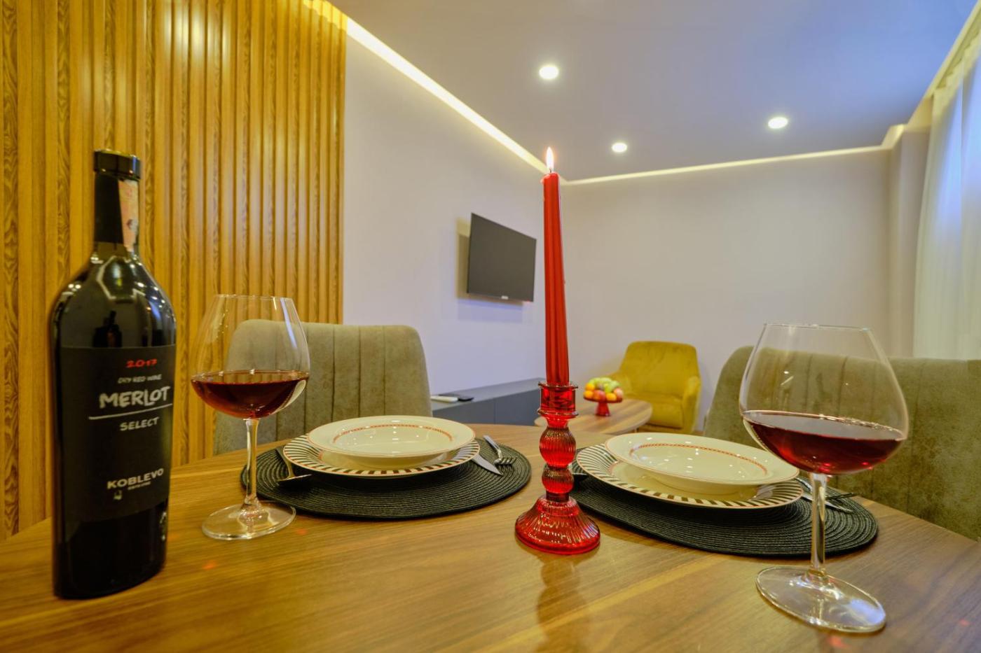 One-Bedroom Apartment. This spacious apartment includes a kitchen, a seating area, 1 separate bedroom and 1 bathroom with a bath and a shower. In the kitchen, guests will find a stovetop, a refrigerator, a dishwasher and kitchenware. The air-conditioned apartment offers a flat-screen TV with streaming services, a washing machine, soundproof walls, a tea and coffee maker as well as city views. The unit has 1 bed.