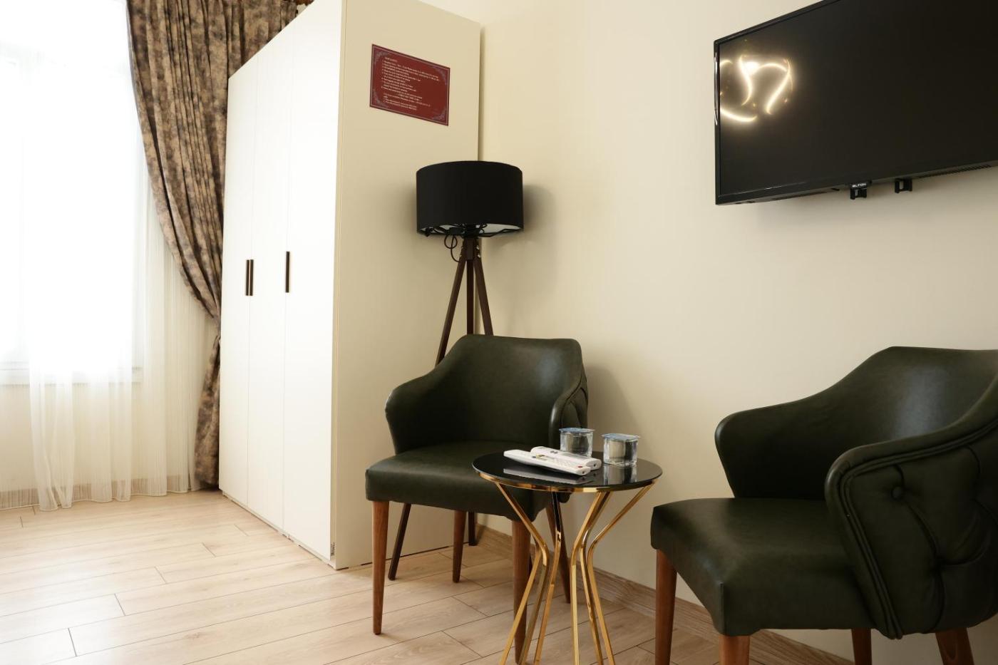 Deluxe Suite. The air-conditioned suite has 1 bedroom and 1 bathroom with a shower and a hairdryer. The suites kitchenette, which features a refrigerator, is available for cooking and storing food. The suite offers a tea and coffee maker, a seating area, a safe deposit box, a flat-screen TV with satellite channels, as well as city views. The unit has 1 bed.