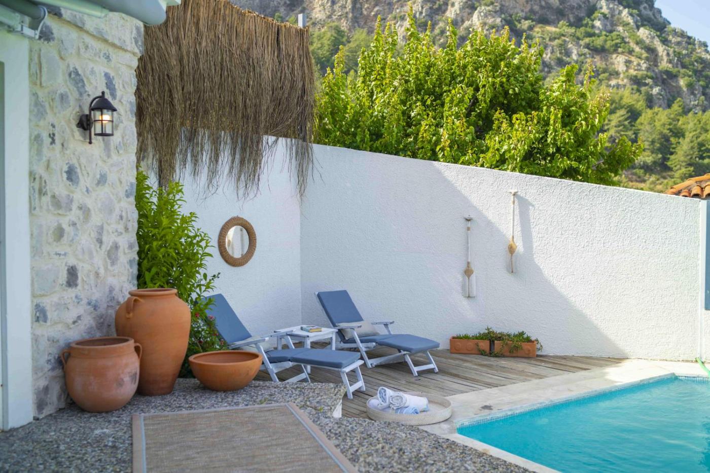 Two-Bedroom Villa. This villas standout feature is the pool with a view. Boasting a private entrance, this air-conditioned villa includes 1 living room, 2 separate bedrooms and 2 bathrooms with a bath and a shower. Guests can make meals in the kitchen that is fitted with a stovetop, a refrigerator, a dishwasher and kitchenware. Featuring a terrace with sea views, this villa also offers a washing machine and a flat-screen TV with satellite channels. The unit has 4 beds. ;